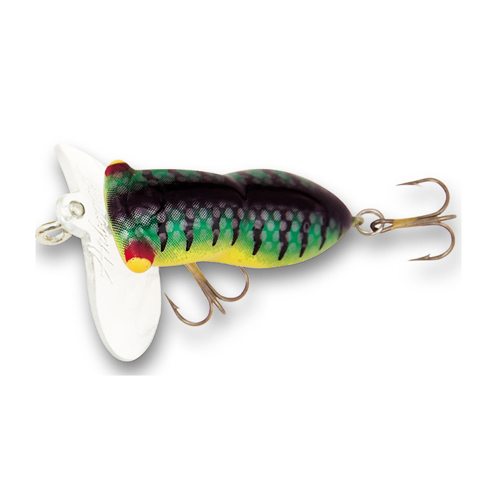 The Arbogast® Hocus Locust™, the newest “nature’s look-alike” lure combines the lifelike appearance of a locust with the action of the legendary Arbogast Jitterbug. The carefully designed Hocus Locust lip produces the same loud but gentle “plop, plop, plop” of a locust as it struggles to free itself from the water’s grasp. The fish-producing reputation of the new Arbogast Hocus Locust will soon place it alongside other famous Arbogast lures as a top-selling, top-producing topwater favorite.