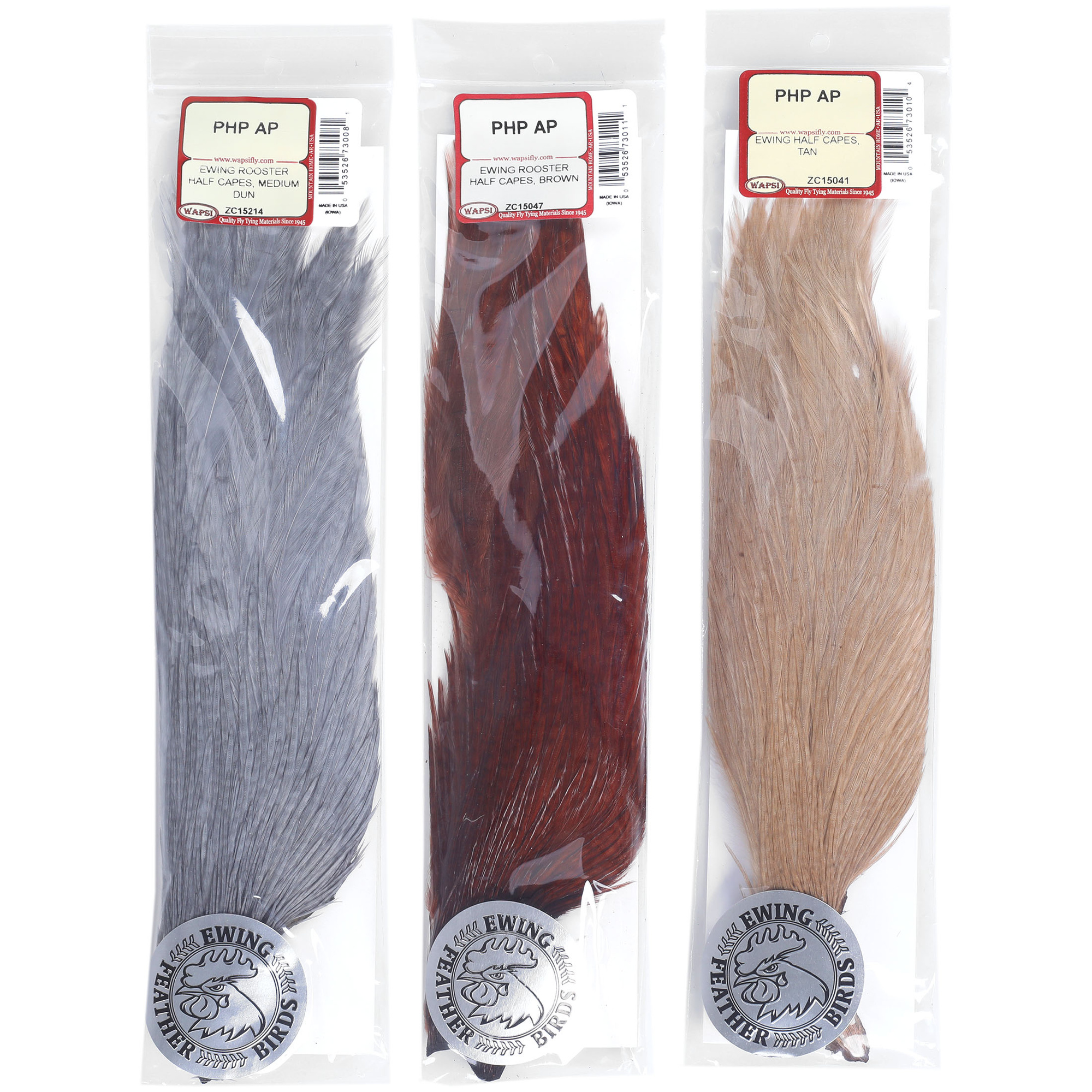 Ewing Half Capes: Ewing Half Capes are an excellent choice for anglers looking for high-quality fly-tying materials at a reasonable price. These half capes provide a rich selection of feathers suitable for various types of flies, including dry flies, nymphs, and streamers. Each half cape contains a wide range of feather sizes, allowing for greater versatility and creativity in lure creation. Ewing Half Capes are valued for their natural durability and ability to maintain the shape of the lure in water, translating to effective fishing.
