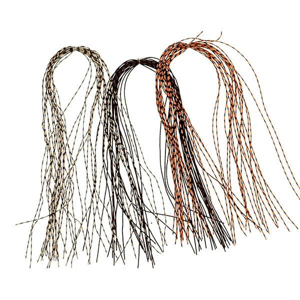 Varigated round rubber legs give beautiful segmented look to nymph patterns.