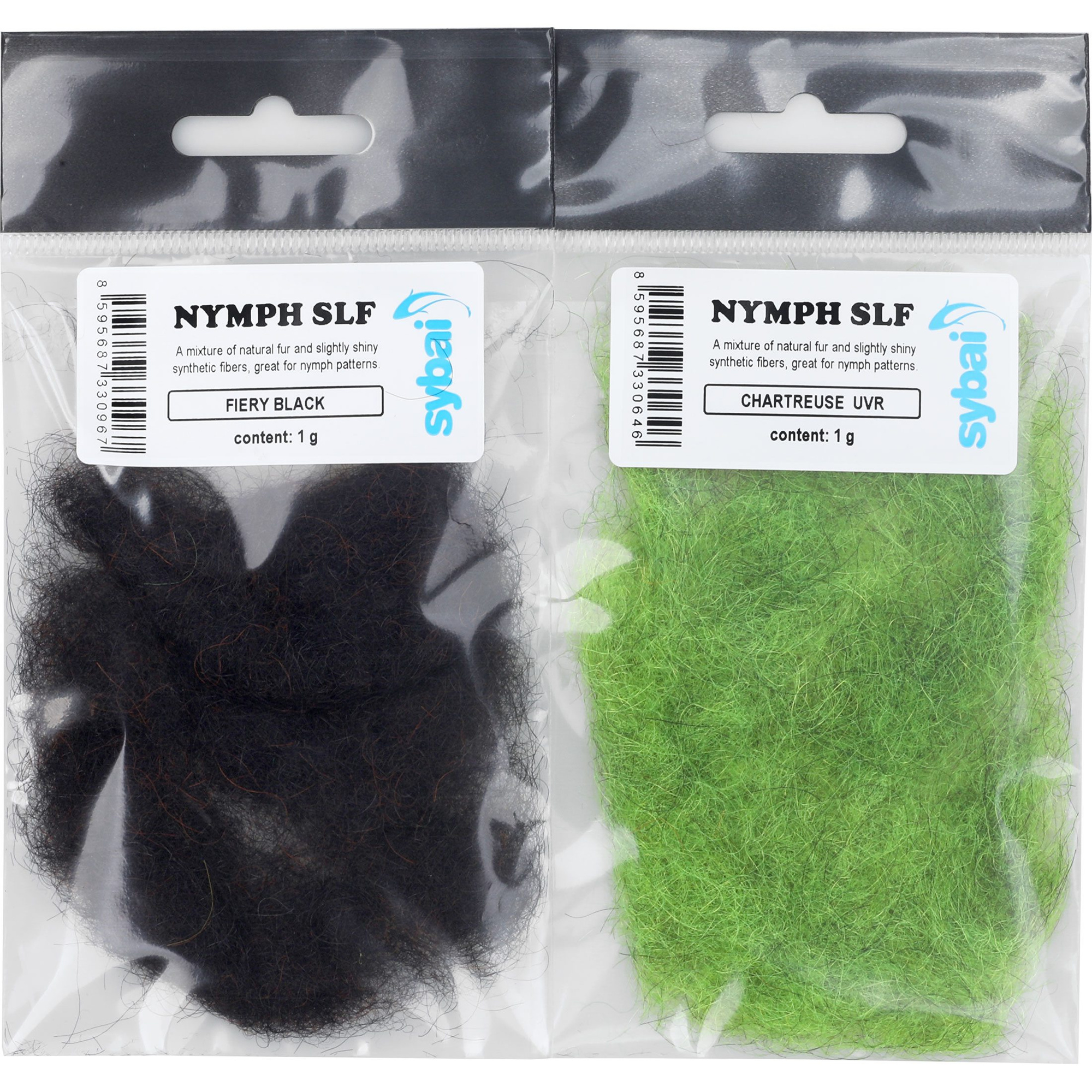 Discover Sybai Nymph SLF – a mixture of natural fur and slightly shiny synthetic fibers, great for nymph patterns.