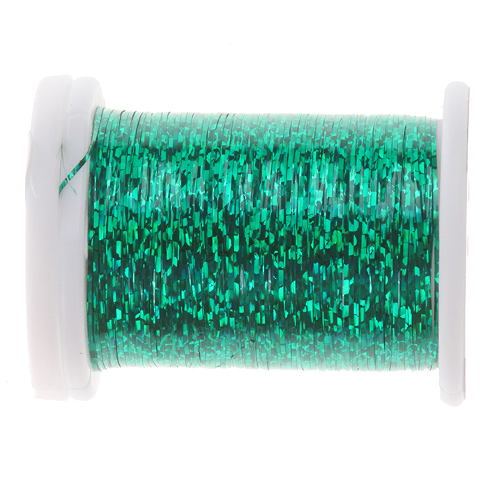 Flat Mylar obtained with laser-made holographic effects. Suitable for the tying of either ribbings and streamers’ bodies, it is an essential material for giving a dash of brilliance when used in combination with other fibers like Crystalflash, glossy flash or other natural fibers, like marabou in streamers’ tails. Sizes 1/32” e 1/16” are indicate especially for big saltwater streamers.