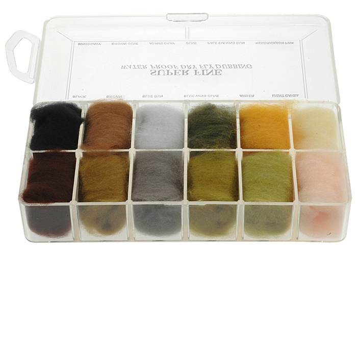 His is a 1.2 denier, 1.5” staple synthetic material that Has been permanently waterproofed. It make fantastic tight bodies on dries past size #28. Great hatch matching colors.