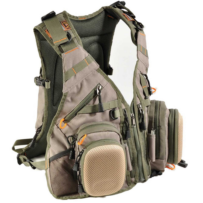 Den avancerade Airflo Outlander-västen och ryggsäcken ger sportfiskaren tillräckligt med utrymme för allt utom diskbänken. Flera framfickor rymmer tillräckligt med plats för två stora flugaskar och andra saker att hålla i handen. Dubbla Zinger-fästen håller fiskeutrustningen nära till hands och redo att användas för det där viktiga snabba bytet.