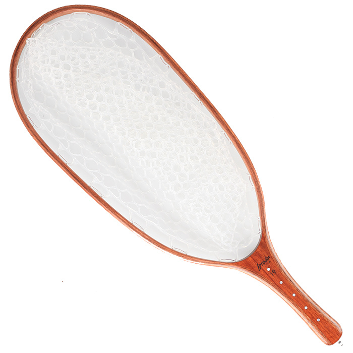 25 total längd 9 x 18 båge spöknätväska Mätmärken för pärlemor Högkvalitativt Cristobal-handtag 4-lagers Chiricano-strupe. Detta är vårt vanliga Gallatin spöknät som presentationsnät. Det har mor till Pärlmåttmärken med centimeters mellanrum från 19. Placera öringens stjärt högst upp på bågen.