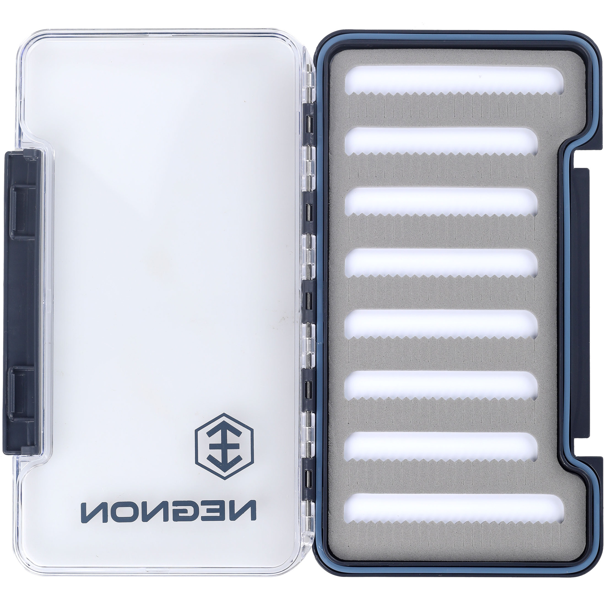 Negnon View Slim Fly Box - Large är en elegant och funktionell box för nymfer och streamers. Det genomskinliga höljet ger en snabb överblick av innehållet utan att behöva öppna lådan. Ett robust gångjärn och stängning garanterar hållbarhet och tillförlitlighet. Tack vare packningen är lådan vattentät när den är stängd. Inuti finns en skuminsats för att nåla fast flugor (finns med utskärningar i olika varianter), fack för småsaker, eller en kombination av skum och fack. Välj den variant som passar dina behov bäst.