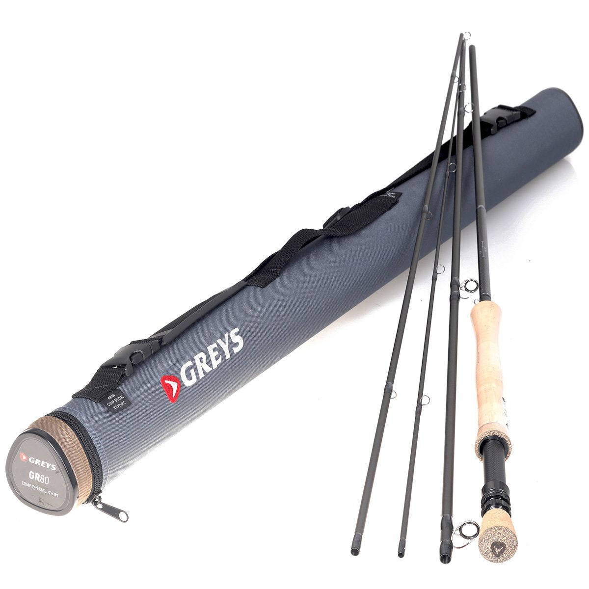 Powerlux 1000-harts och högmodulär kolfiberkonstruktion Markeringar för tävlingsflugmätare Specialanpassat rullfäste för Greys med dubbla låsringar AAA-korkhandtag Markeringar för sektionsjustering Hårt partitionerat stångrör