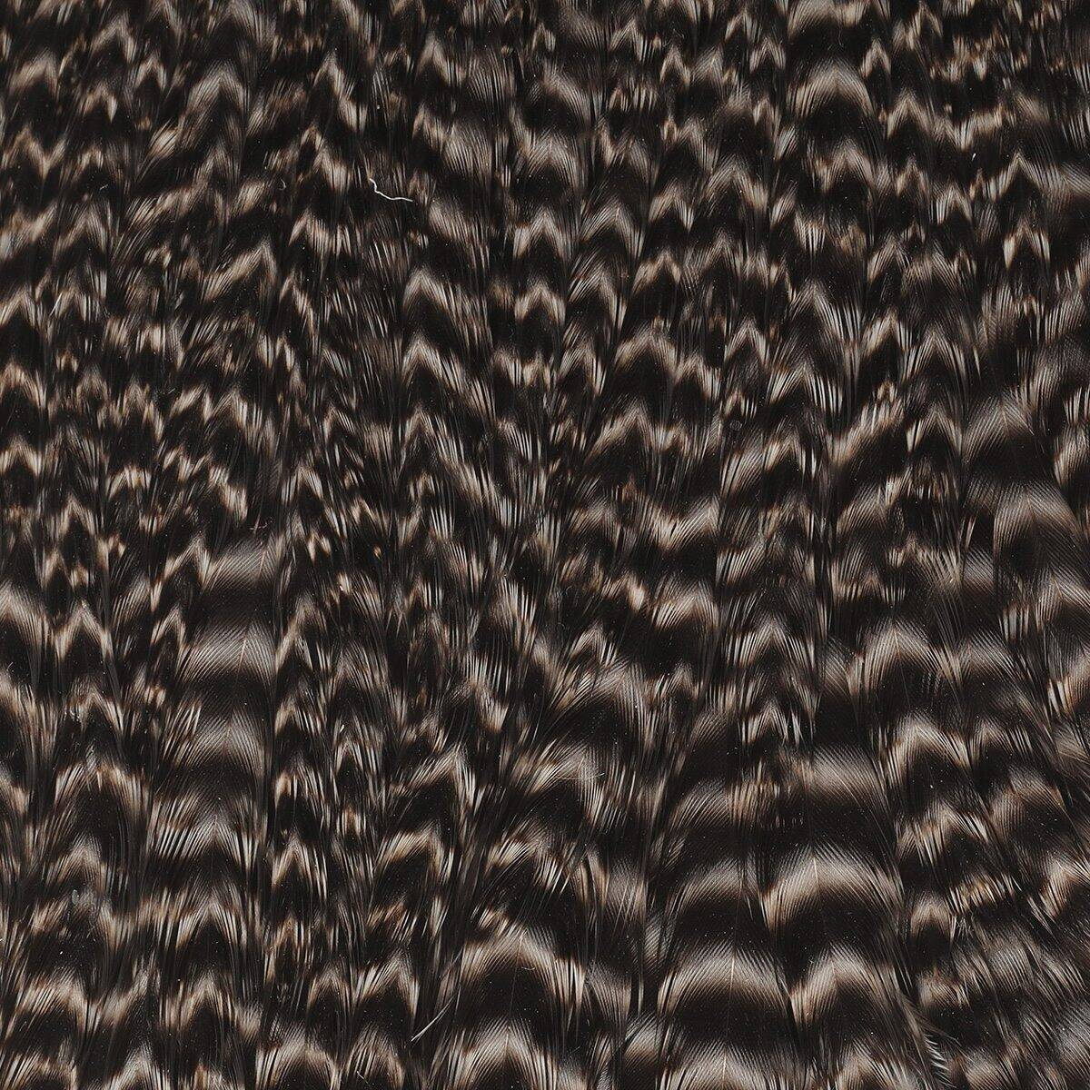 Hareline Hen Cape är ett stort utbud från genetiskt uppfödda fåglar, med ett överflöd av fjädrar i olika storlekar. Denna mångsidighet gör den till ett utmärkt val för flugbanor med fokus på våta flughacklar, nymfer och streamervingar. Från de mycket smala till de bredare fjädrarna, ger varje cape en uppsjö av alternativ, vilket gör det möjligt att skapa ett varierat utbud av mönster. Den genetiska aveln av dessa fåglar säkerställer jämn kvalitet, med fjädrar som erbjuder den rätta balansen mellan mjukhet och styrka, avgörande för att uppnå verklighetstrogna rörelser i vattnet. Hareline Hen Cape är ett måste för flugbanor som vill diversifiera sina skapelser med pålitliga material av hög kvalitet.