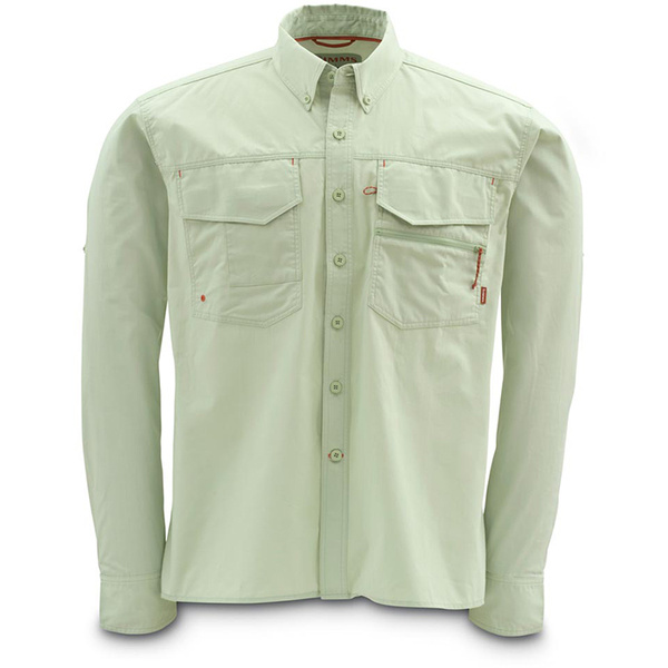 Montana har motiverat många ivriga vandrare att dra på sig fiskpinnar och ge sig ut på sina slående öringlandskap. När du väl kommer hit är Simms Montana-skjorta byggd för att ta på dig och börja fiska. Funktionerna inkluderar en ventilerad rygg och upprullade ärmflikar för att reglera värmen under episka attacker i vildmarken. Ha din arsenal nära till hands med flugboxkompatibla bröstfickor som stängs upptill. Och håll dig tekniskt kunnig med en licenshållare med dragkedja, öljetter för förhängen och tillbehörsögla, och en nedfällbar tail för fullständig täckning när du bugar dig för den vilda Madison River-öringen.