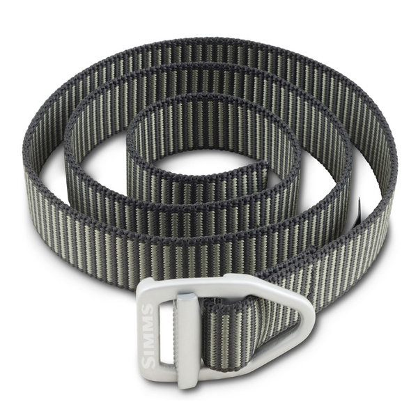 Vårt bälte i 100 % nylon är en ständig bästsäljare och finns i en mängd olika färger och mönster. Spännet är tillverkat av flygplansaluminium med laseretsad Simms-logotyp.