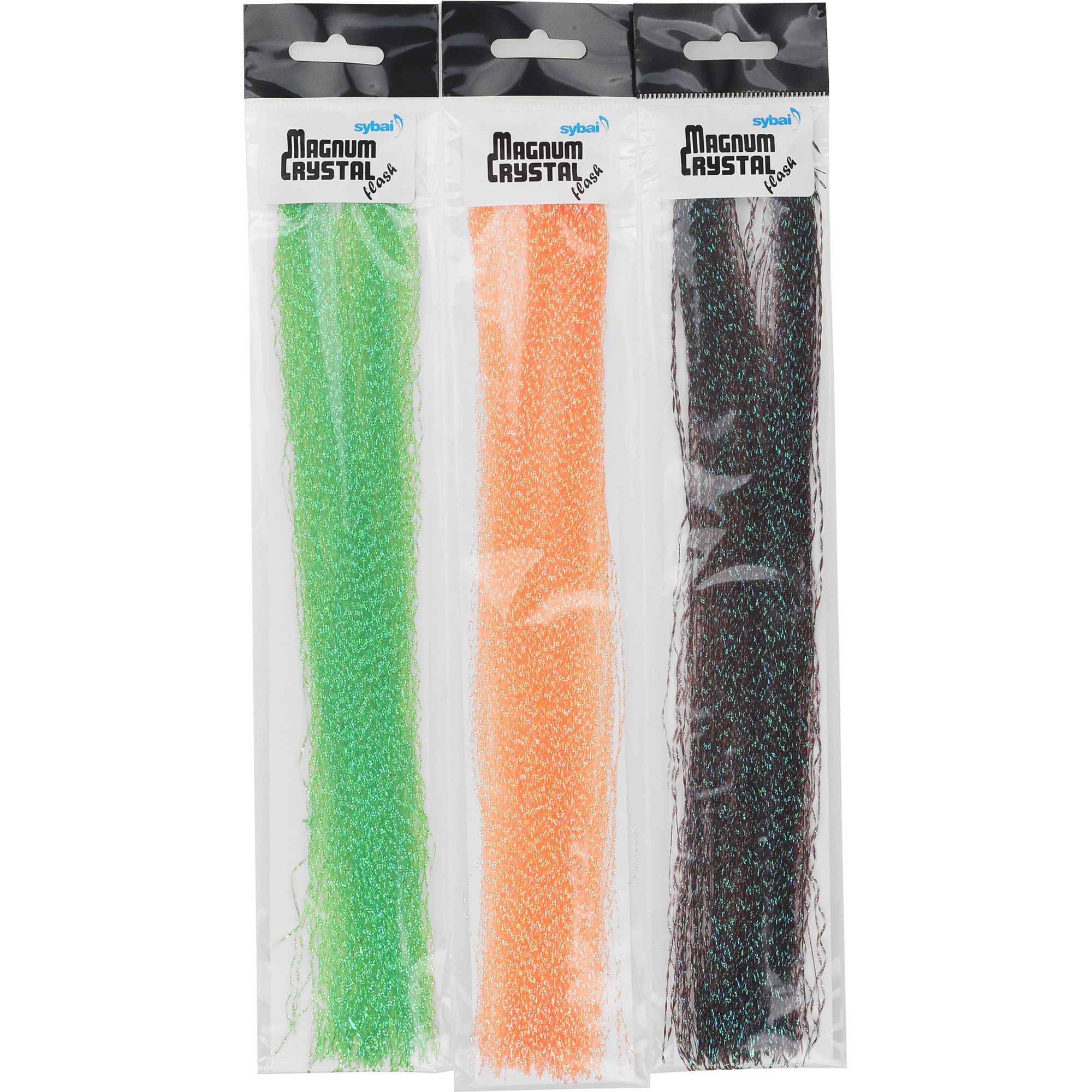 Upptäck Sybai Magnum Crystal Flash Hair – exceptionellt starka "Crystal Flash"-fibrer designade för de största streamers. Dessa 27 cm långa fibrer kommer att tillföra otrolig glitter och rörelse till dina flugor. Även en enda fiber kan liva upp flugan avsevärt!