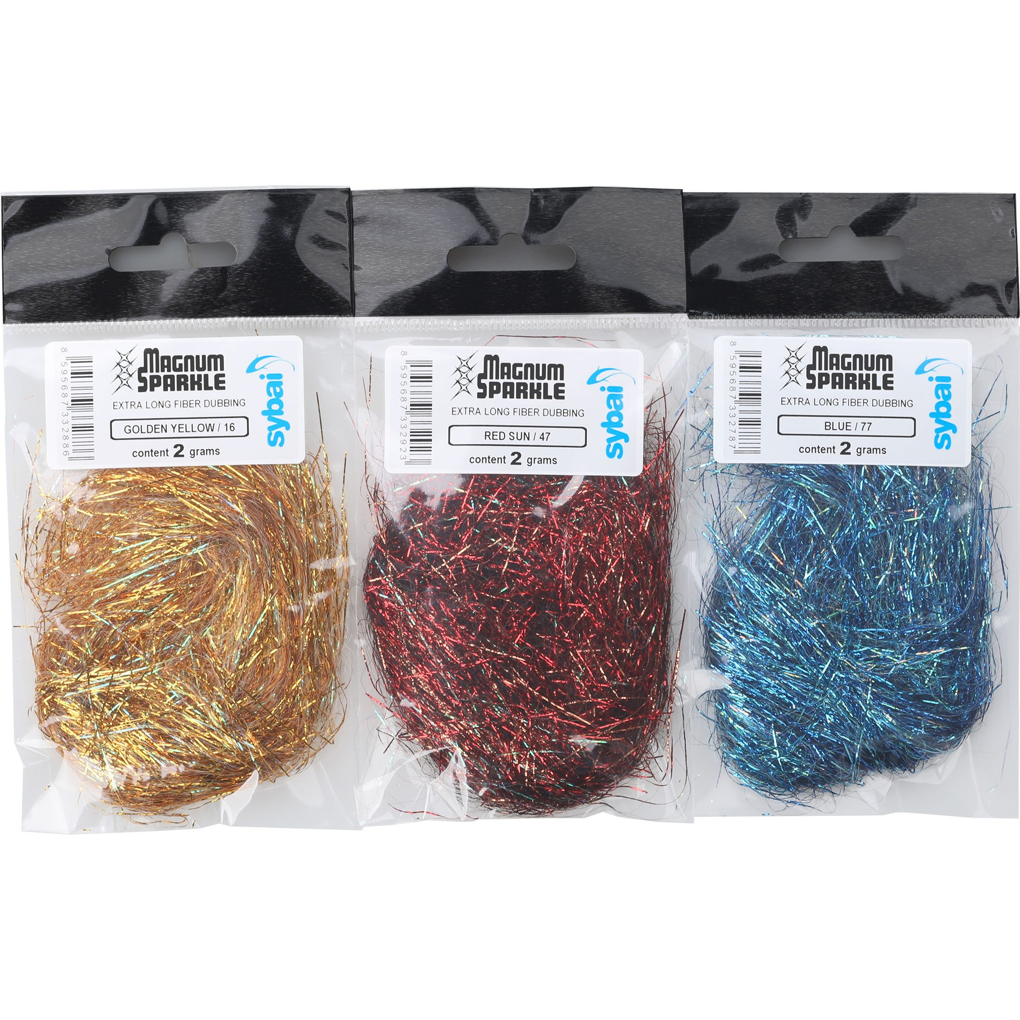 Välj Sybai Magnum Sparkle Dubbing för att göra dina flugor mer synliga och effektiva när det gäller att attrahera fisk.