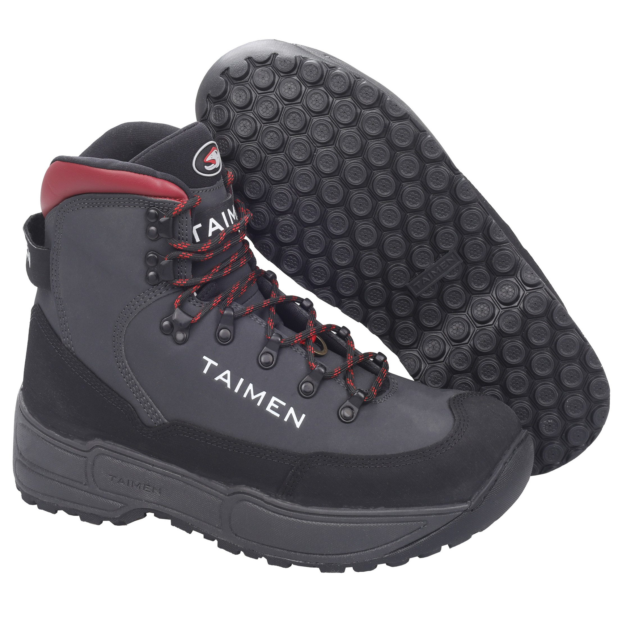 Gummisula Special gummiblandning vald för vadning på hala underlag. Formen på sulan baserad på honeycomb ger möjlighet att skruva på lämpligt antal dubbar efter fiskeförhållandena.